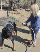 eZall® is a time-saving bathing system that can be used on horses, dogs, cattle, sheep, goats, and any other animal you may find the need to keep clean. Starting out, I purchased the eZall® Starter Bathing Kit for horses which includes a eZall® Foamer, Nine-Position Rinse Attachment, Hose Nozzle and a 4 oz bottle of Total Body Wash Green concentrate. The beauty of this system is the ability to clean an animal in just a few short minutes. How, you ask?
