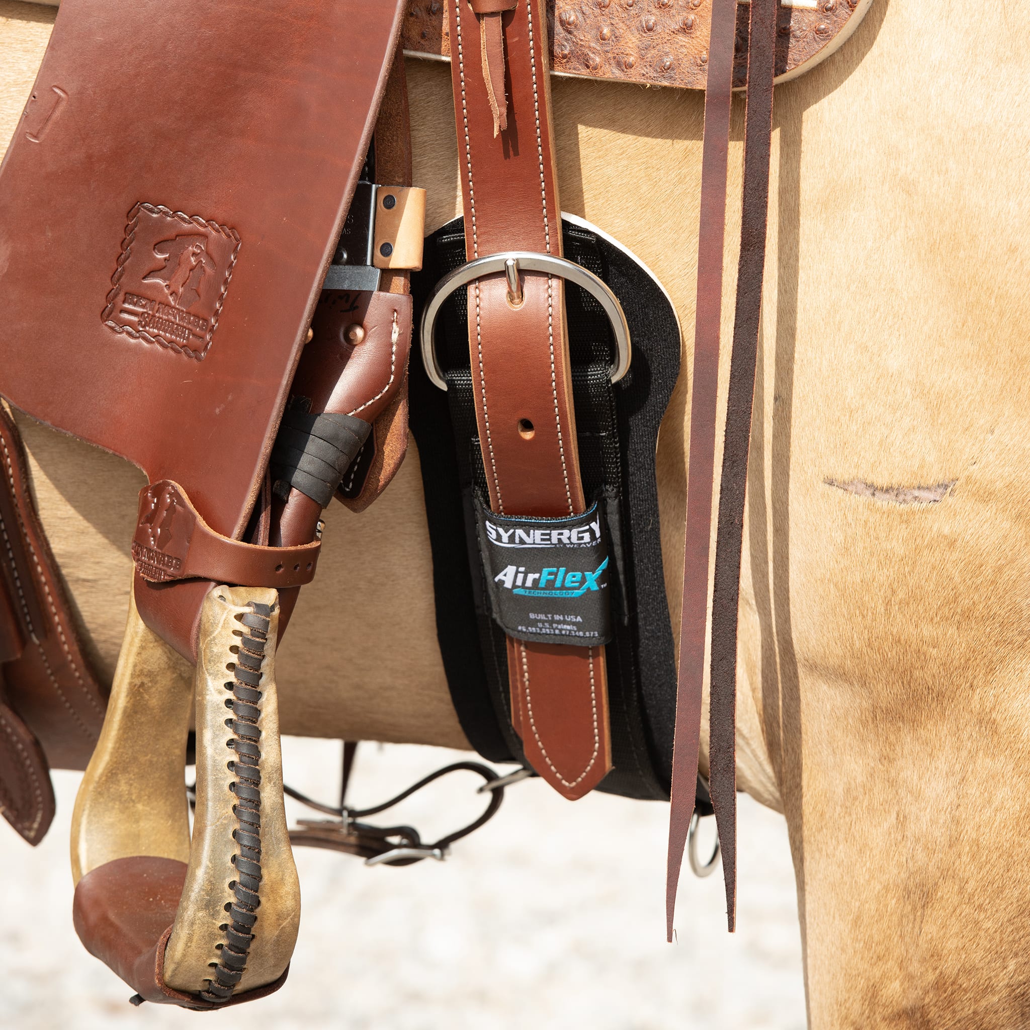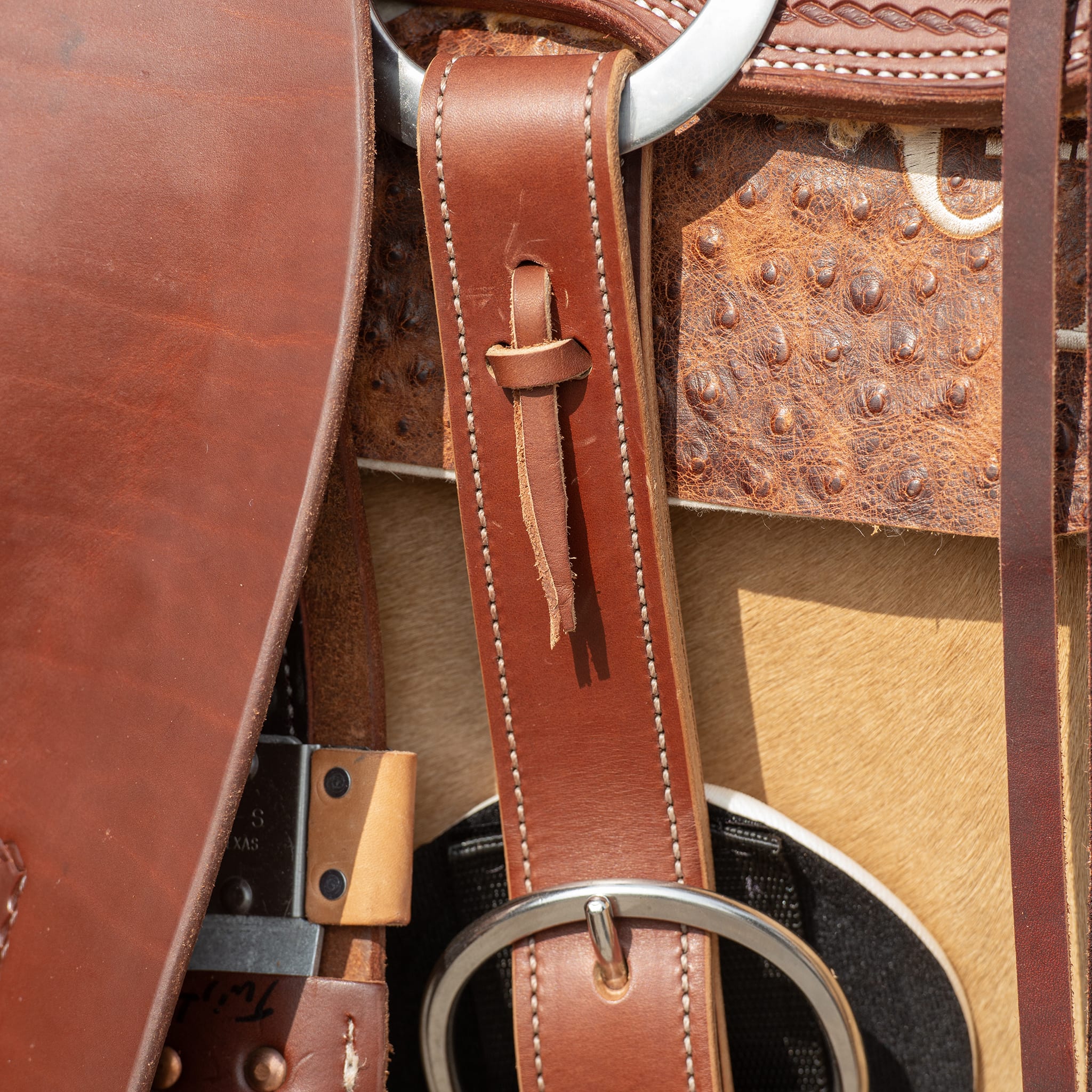 This durable, doubled and stitched off billet is constructed from brown latigo leather. Features a three hole tie and brown latigo leather ties. Measures 1-3/4" x 39".