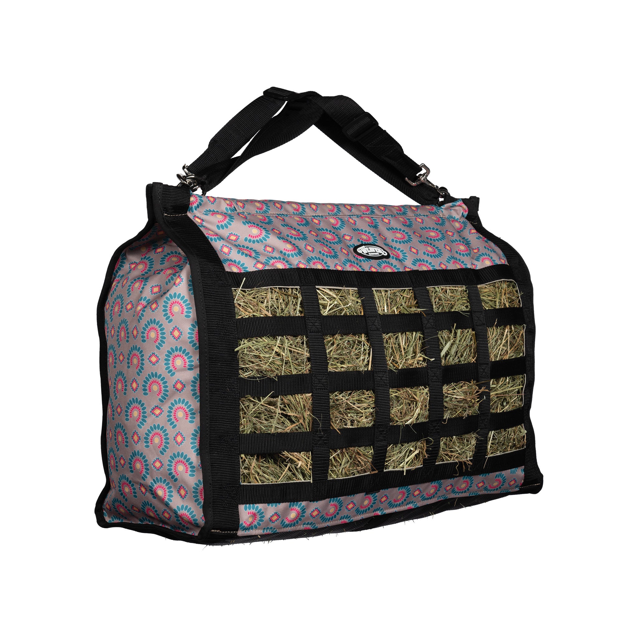 - Top-loading 600D polyester hay bags feature a slow feed design that promotes slower feed consumption for better digestion